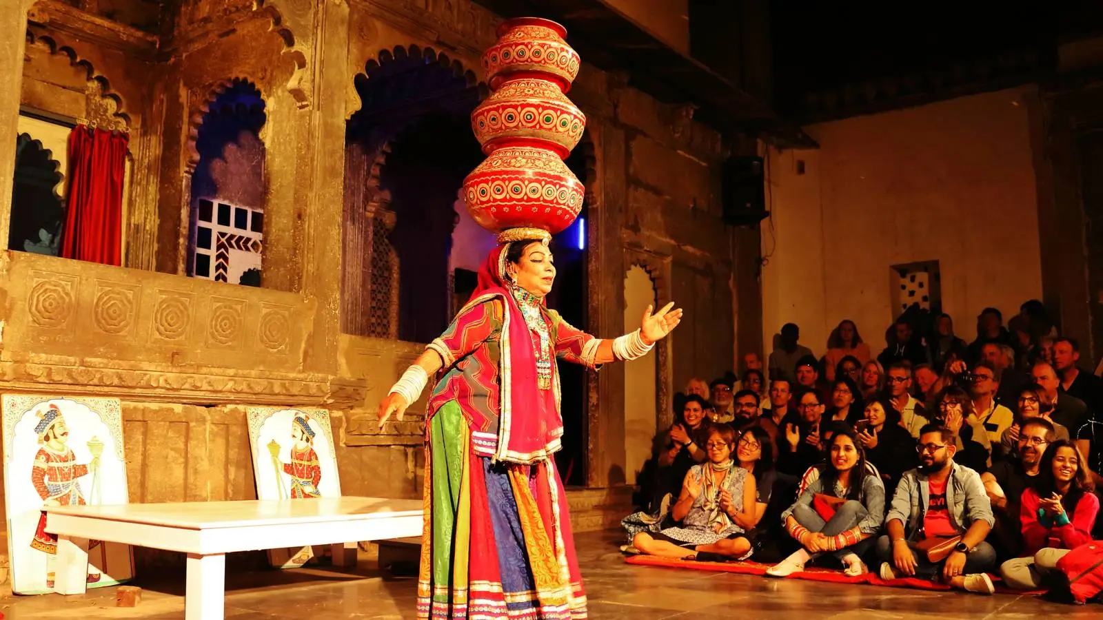 Over time, that everyday skill turned into performance. Bhavai began to appear at festivals and celebrations. Today it can be seen in Rajasthan and in neighboring Gujarat. Each region brings its own touch, but the essence is the same: women dance with pitchers poised on their heads, displaying astonishing control and quiet resolve.