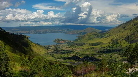 Descubre el Lago Toba en Sumatra: un supervolcán cuya erupción hace 74.000 años cambió el clima. Historia, Geoparque UNESCO y retos de conservación actuales.