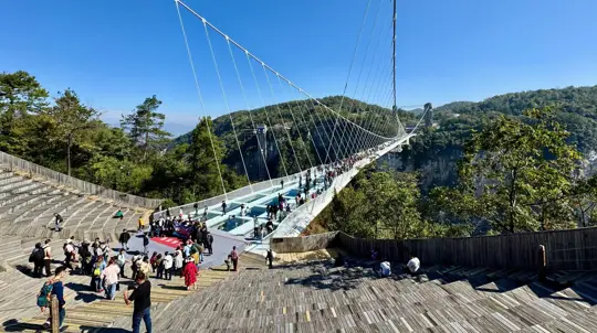 El puente de Zhangjiajie es menos un paseo y más una aventura. Algunos llegan para ponerse a prueba, otros para capturar fotos que cortan la respiración, y muchos simplemente para mirar el mundo desde un ángulo inesperado.