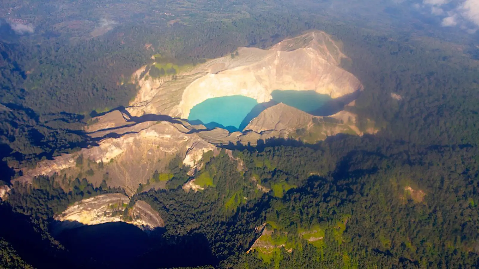Los lagos de Kelimutu (Indonesia) coronan un volcán. Suelen cambiar de color y pueden verse de forma muy distinta de una temporada a otra.