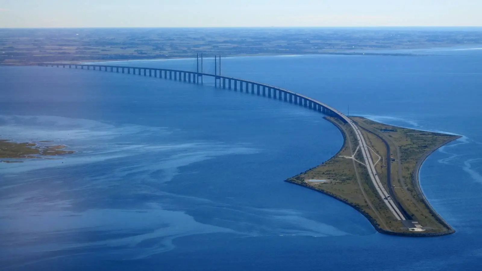 A rigor di termini, Oresund non è soltanto un ponte. È una sequenza di opere: un lungo viadotto, un tunnel e un’isola artificiale, per quasi 16 chilometri da sponda a sponda. Le auto scorrono sul livello superiore, i treni su quello inferiore. Questa soluzione consente di mantenere libere le rotte marittime nello stretto ed evita interferenze con i decolli e gli atterraggi dell’aeroporto vicino.