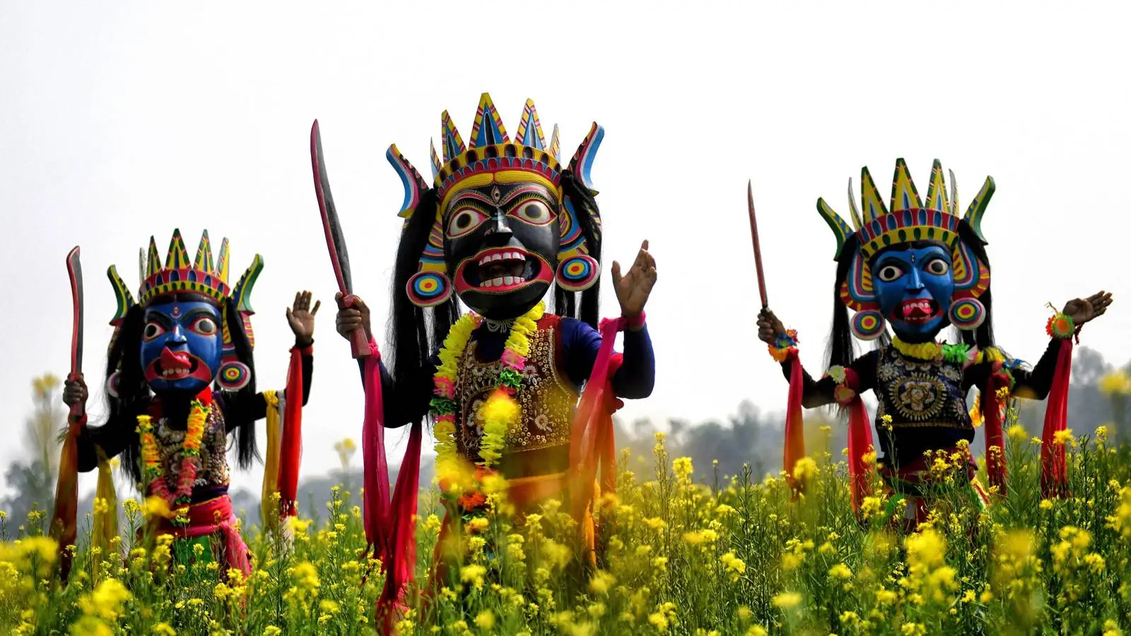 Os artistas vestem máscaras que representam esses espíritos e encenam quadros que zombam dos demônios, riem deles e, assim, os afugentam. A encenação fica entre o exorcismo, o teatro e a festa popular. O humor parece calculado — uma forma de reduzir o medo à sua justa medida.