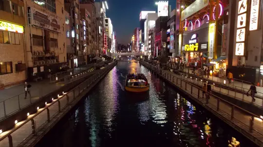 Dotonbori (Дотонбори) — культовый район развлечений, известный яркими неоновыми вывесками, ресторанами и каналом. Здесь вы найдёте знаменитую вывеску бегущего человека Glico.