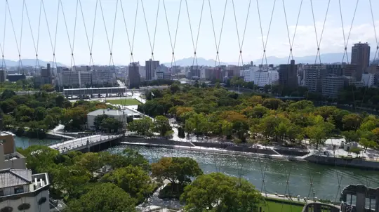 Выйдите на остановке «Genbaku Dome-mae» — она находится прямо перед Атомным куполом и входом в парк.