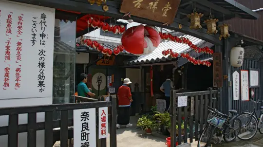 Квартал удобно расположен недалеко от центральной части города Нара. Сюда легко дойти пешком от станций Kintetsu Nara или JR Nara. Прогулка займет не более 15–20 минут.