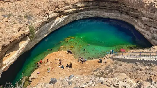 Воронка Бимма — не просто дыра в земле, а настоящий оазис посреди оманской пустыни, до которого легко добраться. Это отличное дополнение к маршруту по южному побережью страны и незабываемое место для тех, кто любит открывать необычные локации без толп.