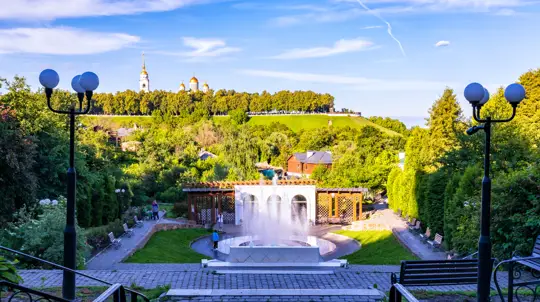 Пройдите к памятнику князю Владимиру и святителю Фёдору, откуда открывается вид на мост 850-летия.