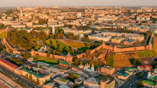 Мощная крепость, возвышающаяся на высоком правом берегу, где сходятся реки Волга и Ока, — главная достопримечательность исторического центра. Это старейшая часть города и объект культурного наследия России федерального значения.