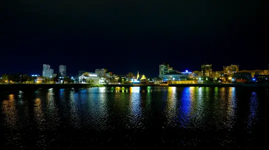 Набережная реки Миасс — популярное место прогулок с кафе и смотровыми площадками.
