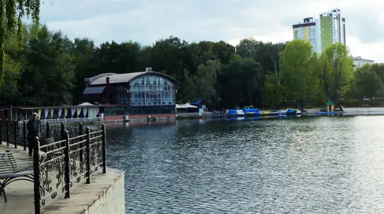 Небольшая зелёная зона с прудом и аллеями, где можно отдохнуть в тени деревьев.