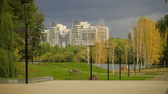 На возвышении оборудована обзорная площадка, откуда открываются живописные панорамы водохранилища и города. Особенно красиво здесь на закате, когда солнце опускается за горизонт, окрашивая небо в розово-золотые оттенки.