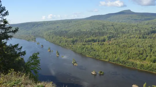 С верхней площадки открываются потрясающие виды на таёжные просторы, извилистое русло реки и соседний Полюд. Это один из самых выразительных уголков Урала, где чувствуешь единение с северной природой.
