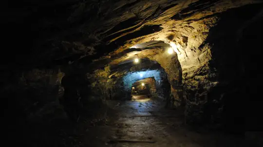 Маршрут начинается с поездки на небольшом поезде, который везёт гостей по узким коридорам, уходящим глубоко в толщу горы. Во время движения гид рассказывает о добыче руды, тяжёлых условиях труда и легендах, связанных с этим районом. Атмосфера производит сильное впечатление благодаря естественному освещению, неровным стенам и старинным укреплениям.