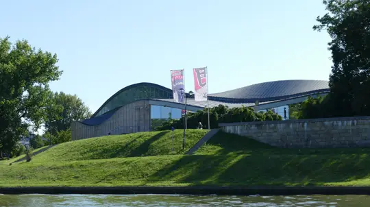 Современное, с большими окнами и видом на Вавельский замок. Внутри — кафе и сувенирный магазин.