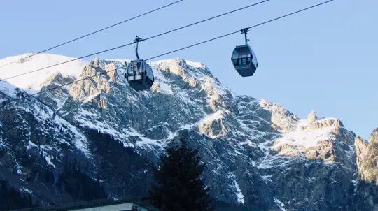 Домбай оборудован современной системой канатных дорог, состоящей из трёх очередей, каждая из которых имеет свою специфику: