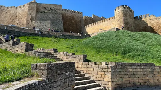 Если вы находитесь в старом городе, достопримечательность расположена в пешей доступности от крепости Нарын-Кала — около 10–15 минут ходьбы.