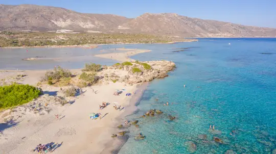 Elafonisi — один из самых необычных пляжей Греции. Он расположен на юго-западе Крита примерно в 75 км от города Chania. Территориально это полуостров, который в зависимости от прилива превращается в маленький остров. Название переводится как «Остров оленей», хотя сегодня оленей здесь уже не встретить.