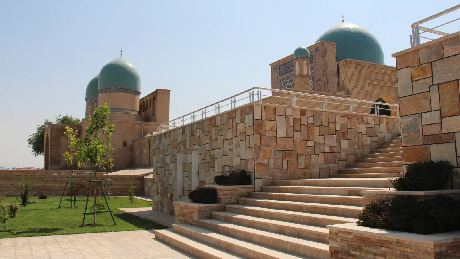 Часть ансамбля Дорут-Тиловат. Рядом — соборная мечеть Кок-Гумбаз и мавзолей Гумбази Сайидон. Весь центр города признан ЮНЕСКО.