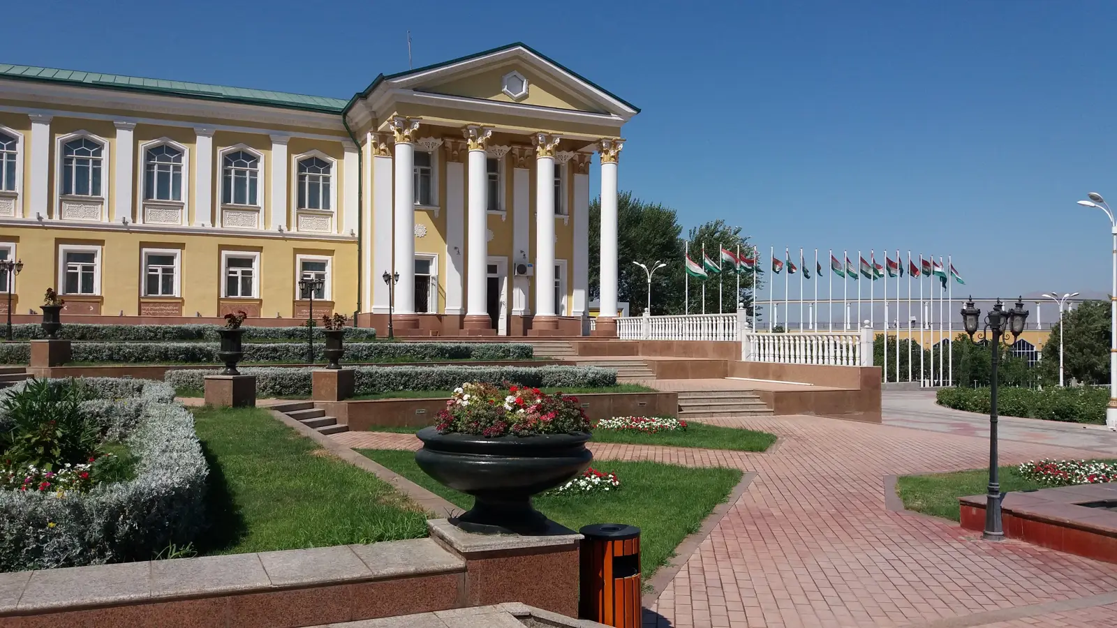 Здание впечатляет сочетанием русской классической архитектуры и таджикских традиций: