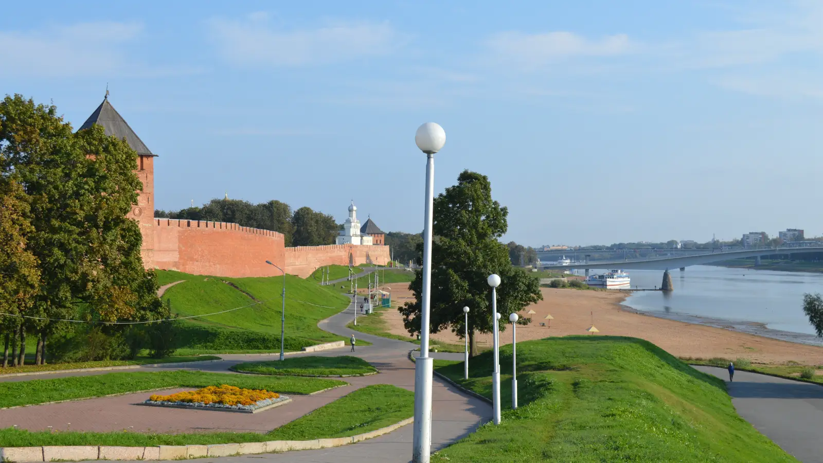 Великий Новгород удобен для передвижения на двухколёсном транспорте. Рядом есть места для парковки велосипедов, а вдоль Волхова проложены комфортные дорожки.
