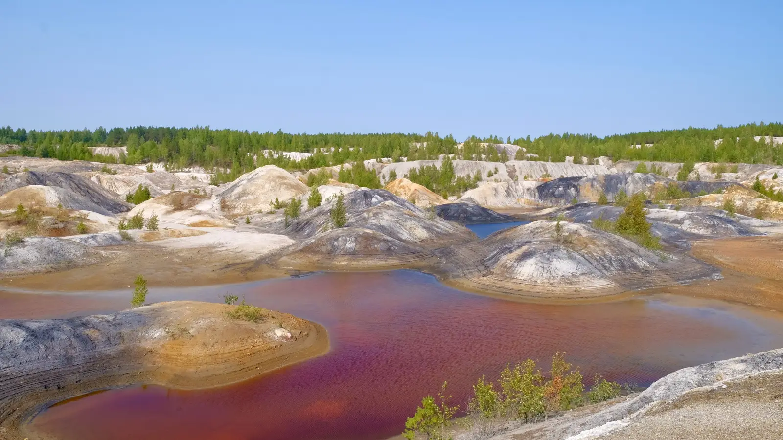 Недалеко от небольшого уральского города находится удивительный природно-техногенный ландшафт, который туристы прозвали Уральским Марсом. Это участок бывшего Троицко-Байновского месторождения огнеупорных глин, превратившийся после завершения добычи в одно из самых необычных туристических направлений региона.