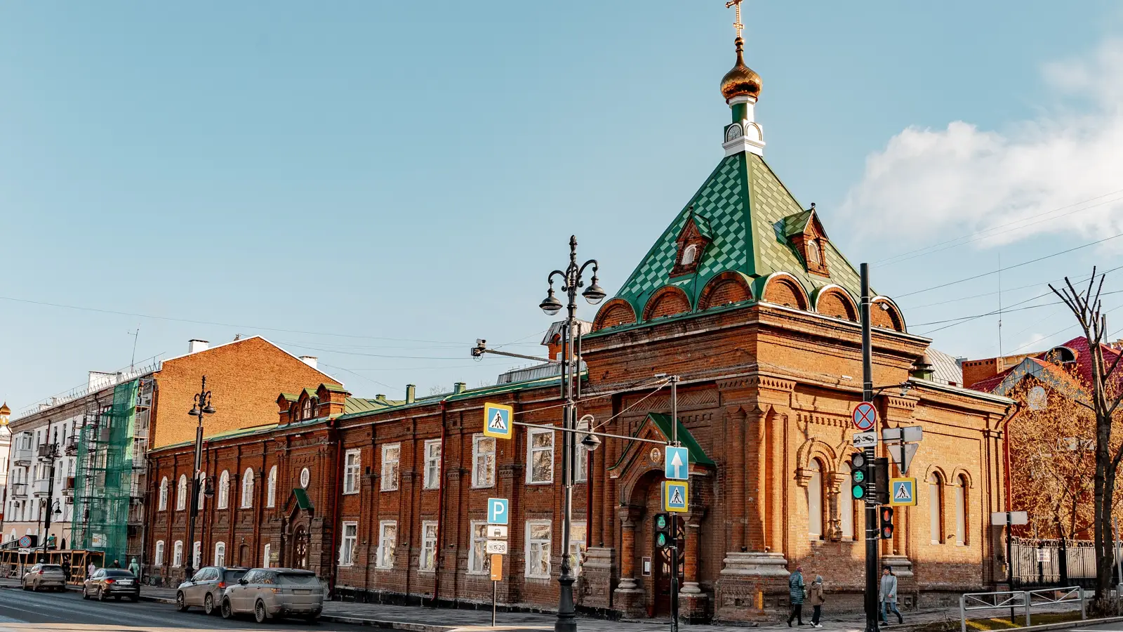 Рядом возвышается Спасо-Преображенский кафедральный собор с позолоченными куполами — одно из главных духовных мест края. Недалеко расположена Мариинская женская гимназия, поражающая элегантностью и утончённостью архитектуры.