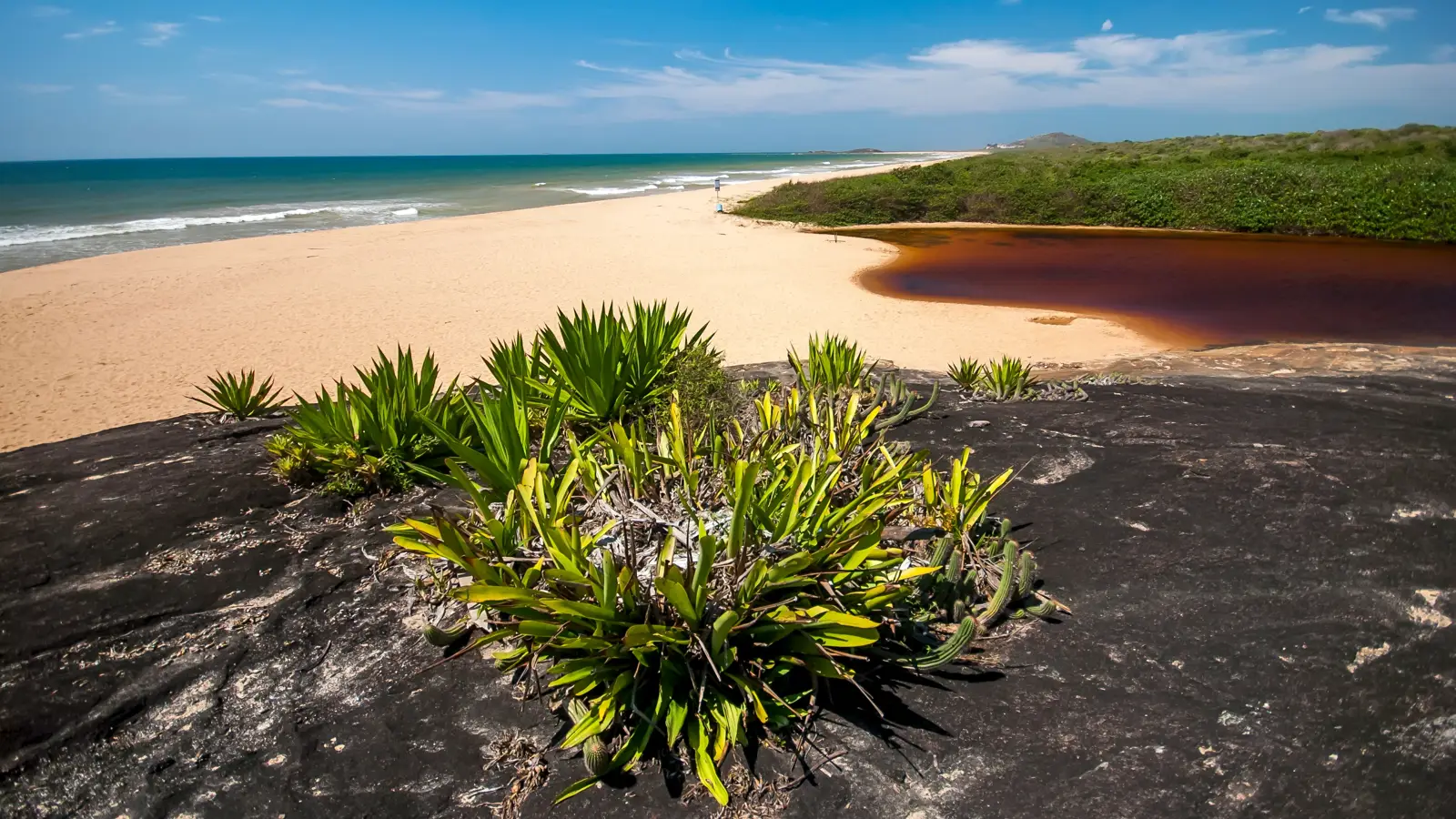 Просторный участок побережья с более развитой инфраструктурой. Отсюда отправляются лодки на красивый остров Прумирим.