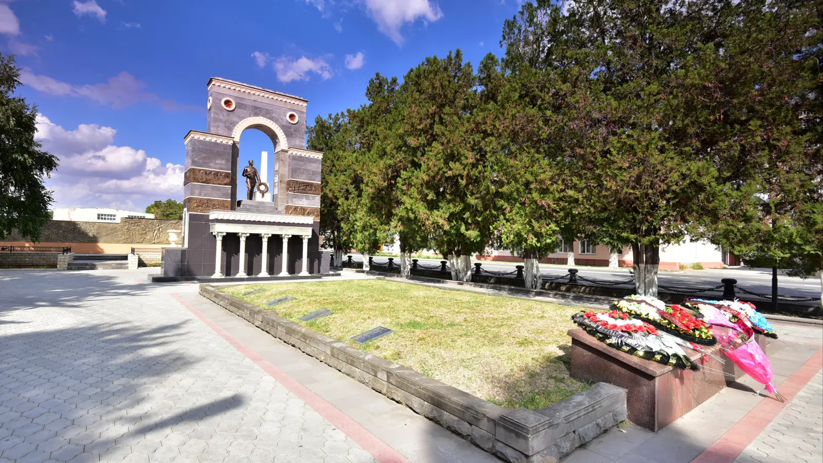 Триумфальная арка: красивая конструкция с гербом Черкесска. Подчёркивает значимость города и важность дружбы народов.