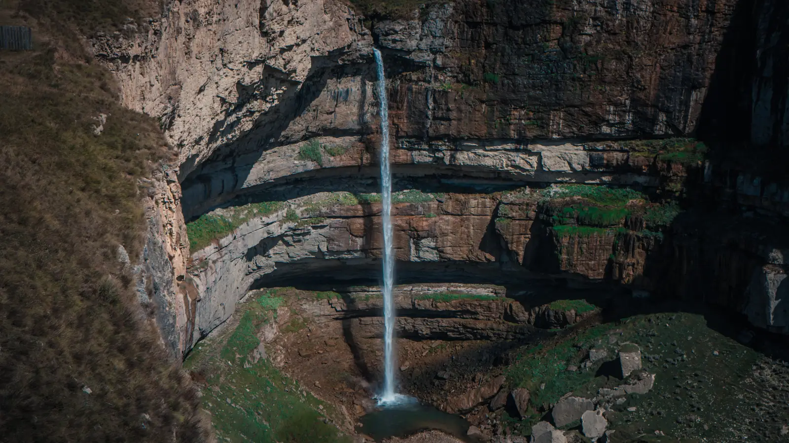 Высота жемчужины региона достигает 70–100 метров, что делает ее одной из самых впечатляющих в горном Дагестане. Поток воды отличается пульсирующим характером: в период таяния снегов и дождей с мая по июль водопад полноводный и мощный, а в засушливые месяцы превращается в тонкую струю, которая вновь оживает после дождей.