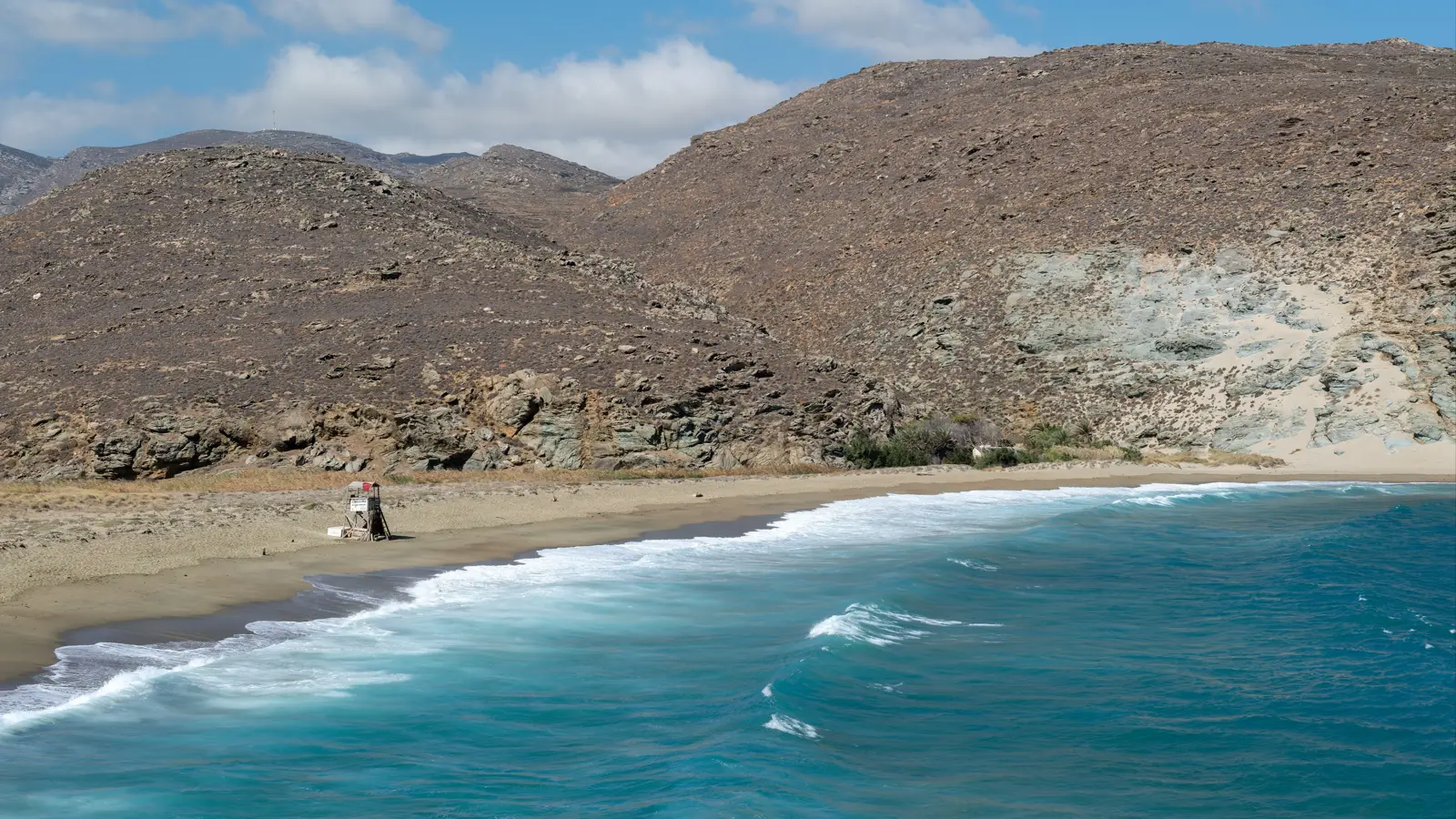 С моря пляж защищён тремя островами: Коронисси, Даскалио и Ромви. На одном из островов сохранились руины древней крепости, построенной ещё во времена правления византийцев — отличное место для короткой морской экскурсии и фотографий.