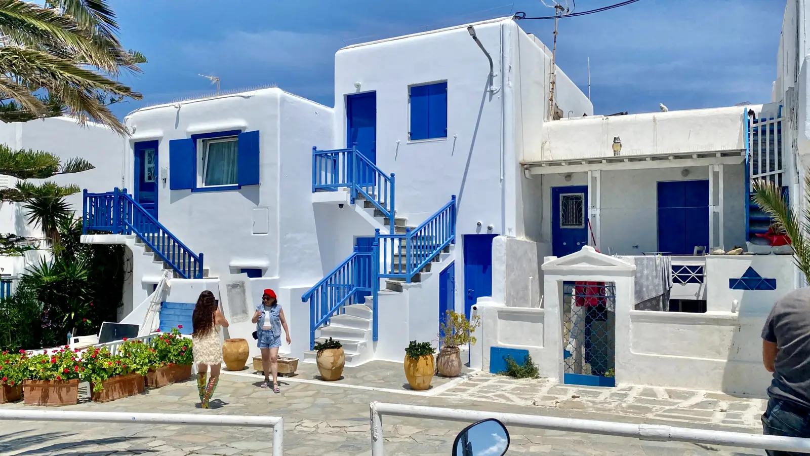 Узенькие улочки, белые дома с синими ставнями и цветущие дворики создают уникальную атмосферу типичного греческого поселения.