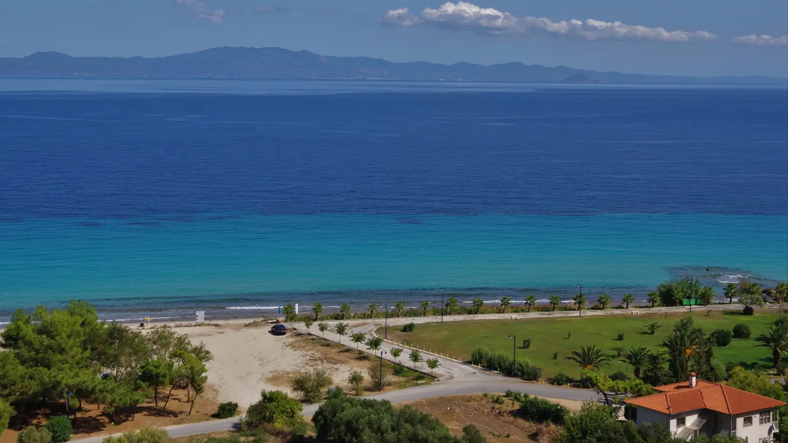 Райское место находится на возвышенности, которую местные жители называют «каменным балконом природы». С этой высоты открываются панорамные виды на море, пляж и зелёные холмы. В ясную погоду можно увидеть очертания полуострова Ситония — соседнего «пальца» Халкидик.