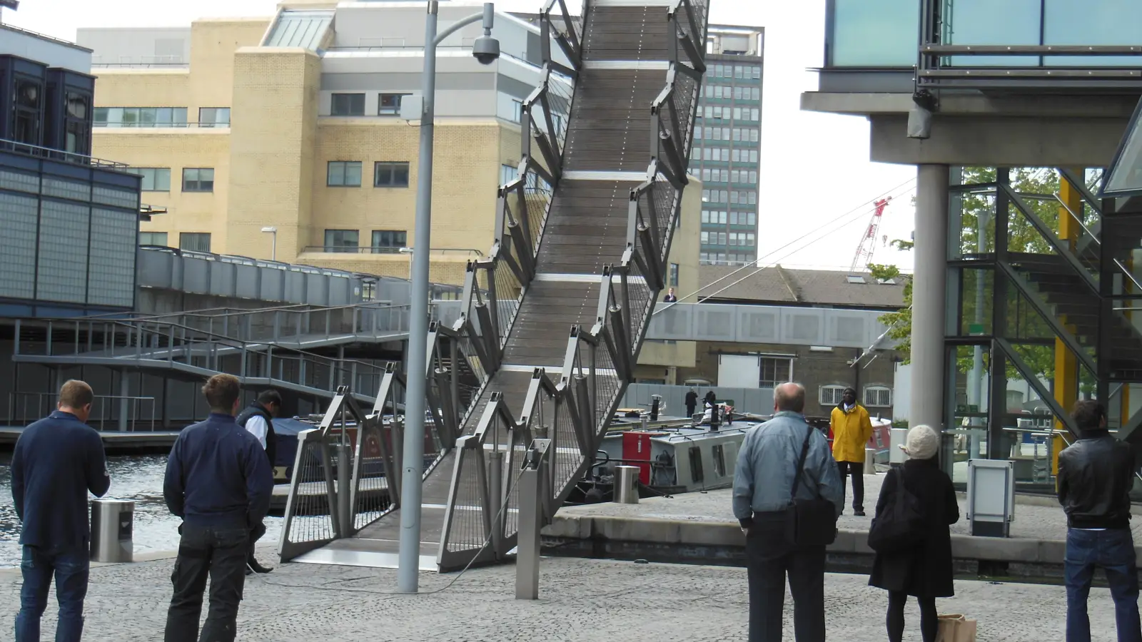 Рядом — ещё один необычный мост, Rolling Bridge. Он складывается, превращаясь почти в круг, благодаря работе гидравлической системы. Выглядит эффектно, но на практике такой мост используют нечасто — слишком уж он медленный и сложный в обслуживании.