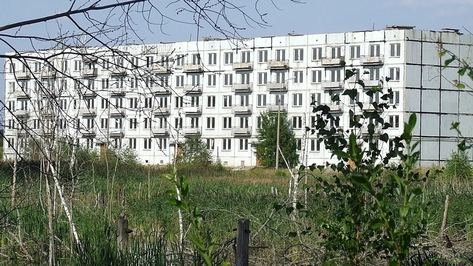 Это был закрытый военный город с радаром. После распада СССР войска ушли, город опустел. Сейчас здесь можно увидеть пустые многоэтажки, школу, клуб — всё, что было нужно для жизни.