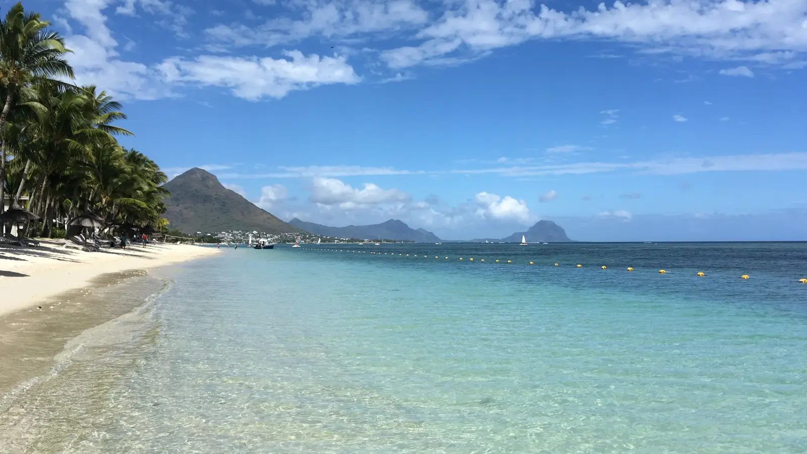 Бель-Омбр — это длинная полоса светлого песка, ряды пальм и ухоженные сады, широкая мелководная лагуна с оттенками от светло-бирюзового до насыщенно-синего.